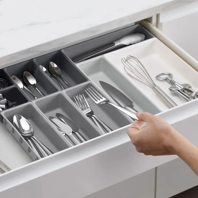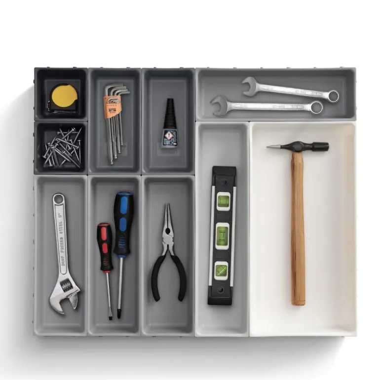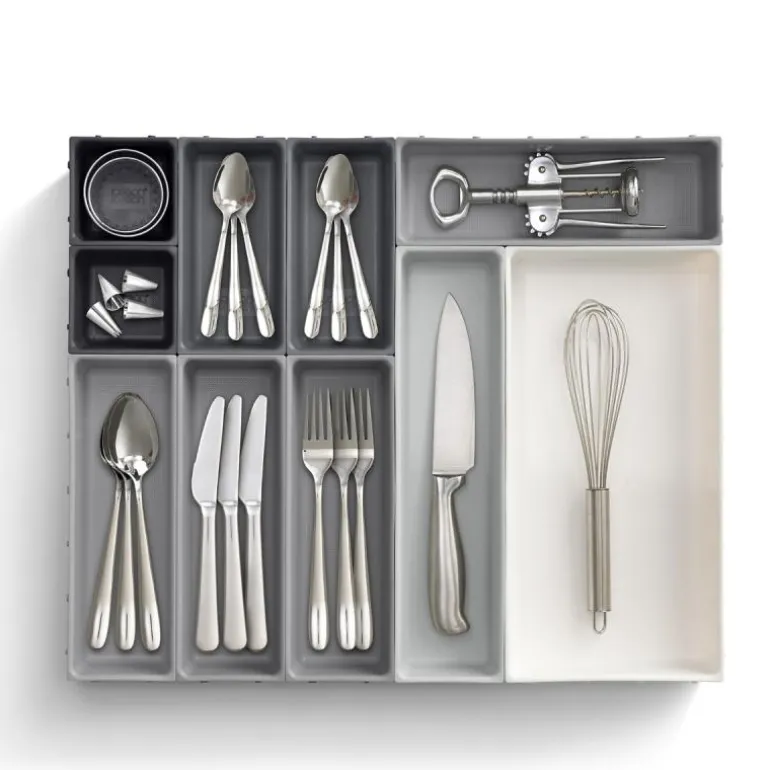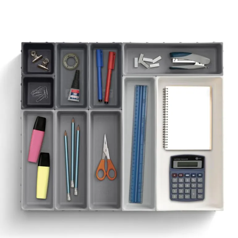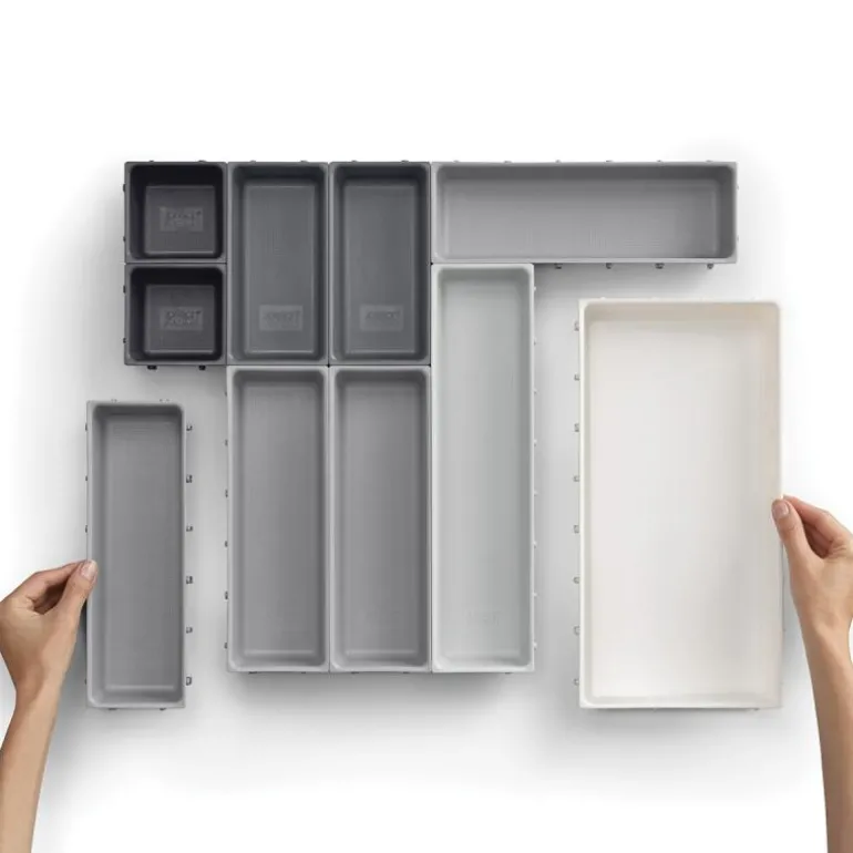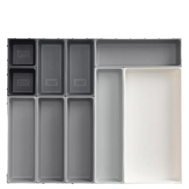 Praktisk skuffeinnsats med 10 bokser i 5 ulike størrelser til diverse kjøkkenredskaper. Rommene festes sammen ved et klikk-system, og du velger selv hvordan de skal være oppsatt.