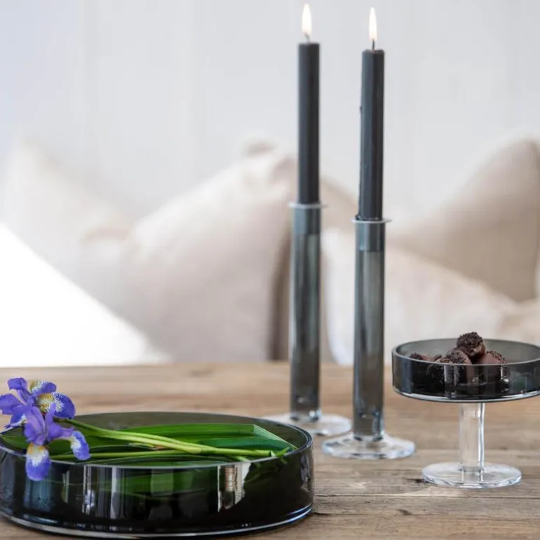 Skyline lysestake er håndlaget og munnblåst av erfarne glassblåsere med lange tradisjoner i håndverket. Alle produktene har et unikt uttrykk og bærer Halvor Bakkes karakteristiske signatur.