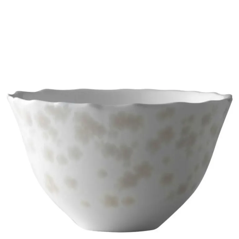 Slåpeblom varmgrå bolle 14 cm i benporselen, fra Wik & Walsøe. I naturen, når sollyset faller på slåpeblomstens kronblader, endrer nyansene seg fra det helt mørke i skyggen, til det helt lyse der solen skinner som sterkest. Slik er det også med kolleksjonen Slåpeblom.