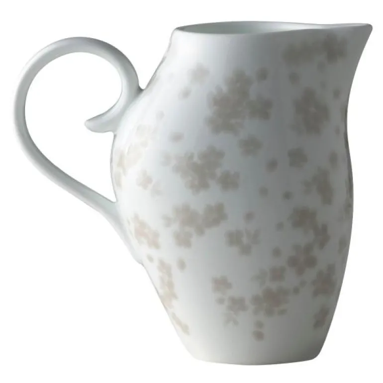 Slåpeblom varmgrå liten mugge 25cl i benporselen, fra Wik & Walsøe. I naturen, når sollyset faller på slåpeblomstens kronblader, endrer nyansene seg fra det helt mørke i skyggen, til det helt lyse der solen skinner som sterkest. Slik er det også med kolleksjonen Slåpeblom.