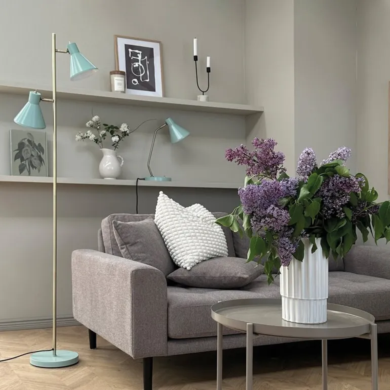 Sleep mint gulvlampe er en varm og stilren lampe som tilfører en jordnær og beroligende atmosfære til hjemmet ditt. Med sin naturlige tone og moderne design, er denne gulvlampen ideell for å skape en innbydende og behagelig belysning i stuen, ved lesekroken eller i et hvilket som helst rom som trenger et snev av hygge.
