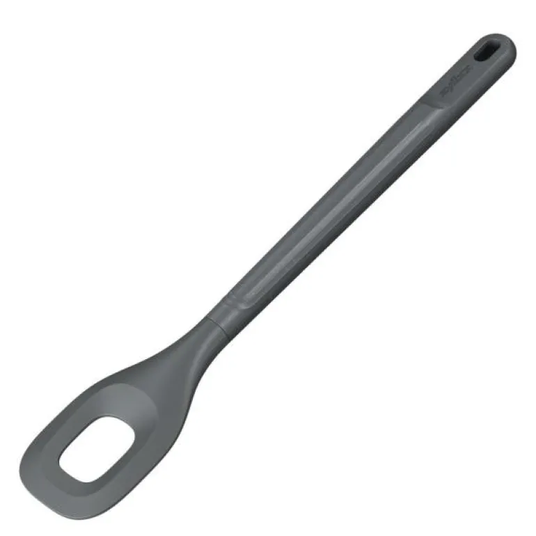 Grå sleiv med hull 30 cm fra Zyliss. Sleiven er ergonomisk å holde i, og kan brukes i non-stick panner.
