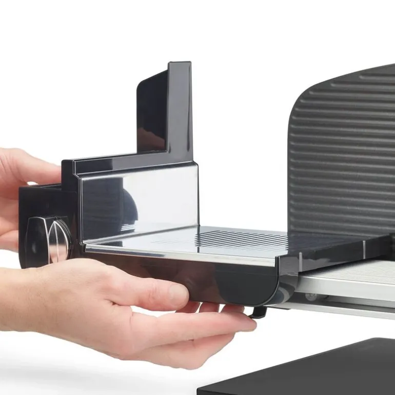 Graef Slicer Classic C95 i iron mica er en skjæremaskin utviklet for deg som ønsker presisjon og effektivitet i matlagingen. Den leveres med et tagget blad i rustfritt stål på 170 mm, som gir god kontroll ved kutting av blant annet brød, ost og spekemat.