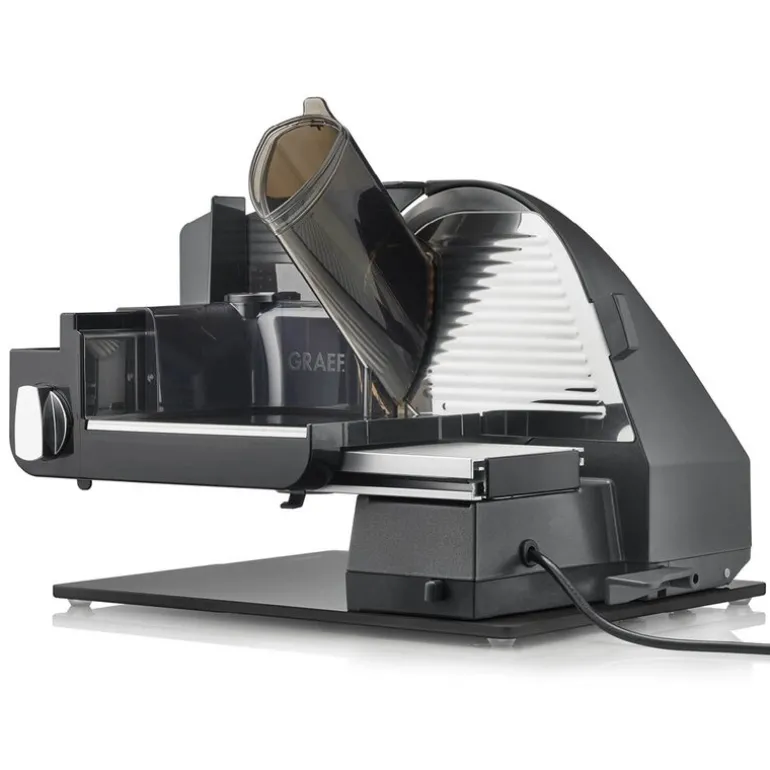 Graef M95 Slicer Master i iron mica er en kraftig skjæremaskin designet for deg som ønsker presisjon og pålitelighet. Maskinen er laget i metall og står på en robust glassplate som gir både stabilitet og et gjennomført uttrykk.