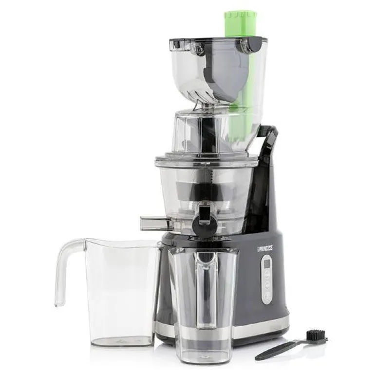 Lag deilig frukt- og grønnsaksjuice raskt og enkelt med denne PRINCESS slow juice-maskinen. Takket være den ekstra store åpningen trenger ikke ingrediensene deles på forhånd. Motoren til 200 W motor og metallgir gir den nødvendige lave hastigheten.Denne slowjuiceren gir deg en fantastisk god juice fylt med alle vitaminene som er igjen.