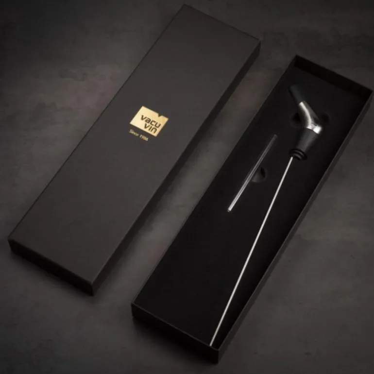 Vacu Vin’s Slow Pourer i sølv/svart er et nødvendig tilbehør for enhver vinentusiast. Denne innovative Slow Wine Pourer bevarer de originale smakene og aromaene til vinen din ved å bruke en unik serveringsteknikk. Med en patentert design som minimerer oksygeneksponeringen mens du skjenker, er dette førsteklasses vinverktøyet ditt beste hjelpemiddel for å utforske nye dimensjoner av smak.