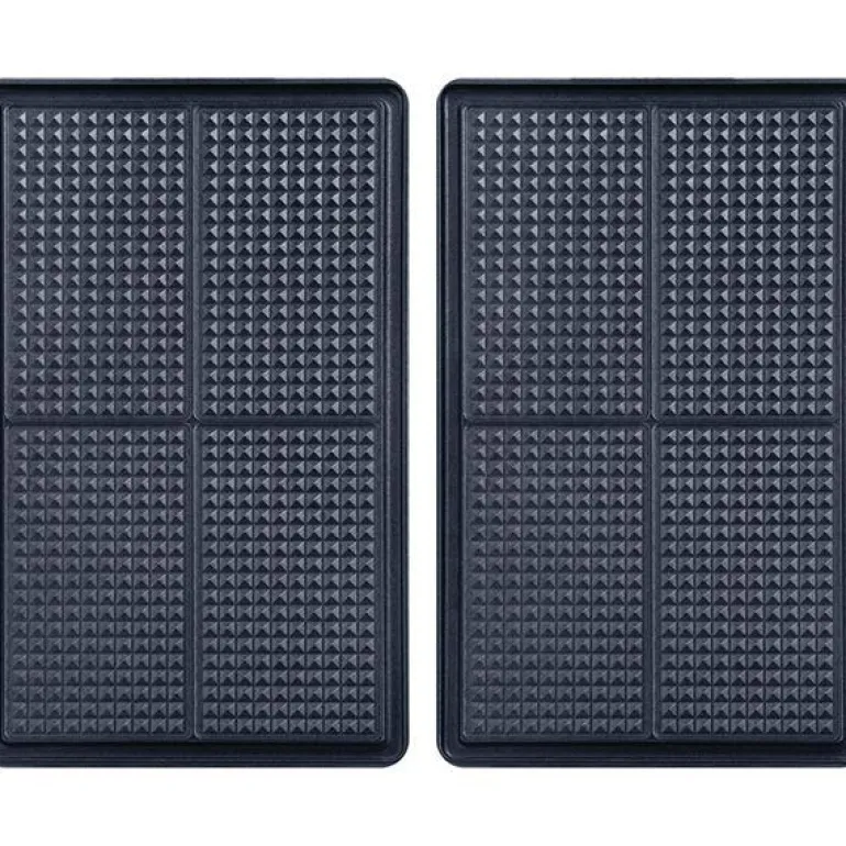 2 plater til Snack Collection multigrill. Med Snack Collection multigrill kan du tilberede alt fra ostesmørbrød og bagles, til vafler og småkaker. Totalt finnes hele 16 forskjellige platesett som du kan samle på og skifte ut, og med hvert sett følger et oppskriftshefte med tips til nye, varierte retter. Bytt ut platene og tryll fram massevis av lekre snacks, kaker og varmretter til familie, venner og deg selv. Snack Collection er like lett å bruke som et vanlig toastjern, og de avtakbare platene tåler rengjøring i oppvaskmaskin. Rydd bort platene i hver sin boks etter bruk, så holder du enkelt orden i platene og sparer plass på kjøkkenet. Ingen fastbrente matrester, takket være non-stick-belegget på platene.