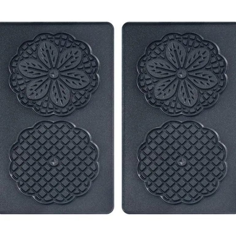 2 plater til Snack Collection multigrill. Med Snack Collection multigrill kan du tilberede alt fra ostesmørbrød og bagles, til vafler og småkaker. Totalt finnes hele 16 forskjellige platesett som du kan samle på og skifte ut, og med hvert sett følger et oppskriftshefte med tips til nye, varierte retter. Bytt ut platene og tryll fram massevis av lekre snacks, kaker og varmretter til familie, venner og deg selv. Snack Collection er like lett å bruke som et vanlig toastjern, og de avtakbare platene tåler rengjøring i oppvaskmaskin. Rydd bort platene i hver sin boks etter bruk, så holder du enkelt orden i platene og sparer plass på kjøkkenet. Ingen fastbrente matrester, takket være non-stick-belegget på platene.