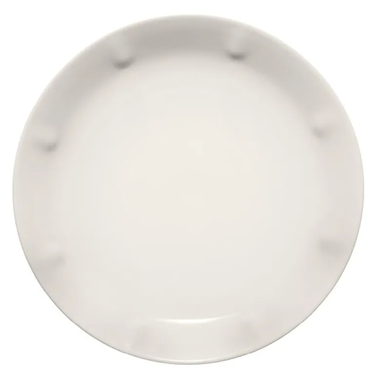 Solare-tallerkenen på 27 cm i hvitt fra Iittala kombinerer minimalistisk funksjonalitet med et tidløst design. Den rene silhuetten og subtile pregingen i den keramiske overflaten gir en behagelig taktil opplevelse samtidig som tallerkenen er enkel å stable. Med sin balanserte størrelse er den like godt egnet til hverdagsmåltider som til mer formelle sammenkomster. Den nøytrale hvitfargen gjør den lett å kombinere med annet servise og tilfører borddekkingen en sofistikert enkelhet.