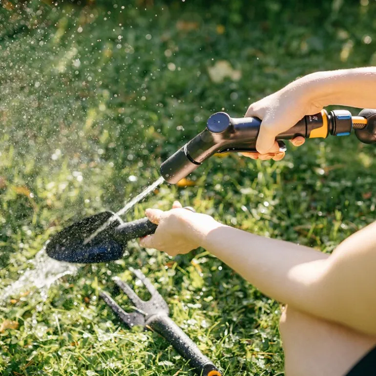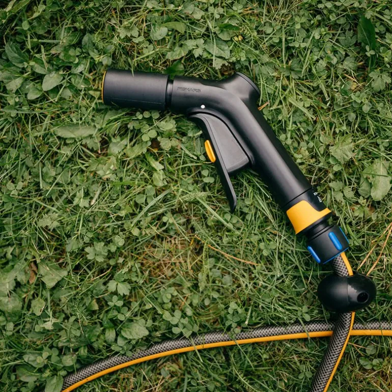 Solid™ strålepistol regulerbar 20 cm svart fra Fiskars. Jetpistol med 2 forskjellige vannstråler. Front avtrekkerfunksjon med lås i håndtaket. Standardkobling – kompatibel med andre merker.
