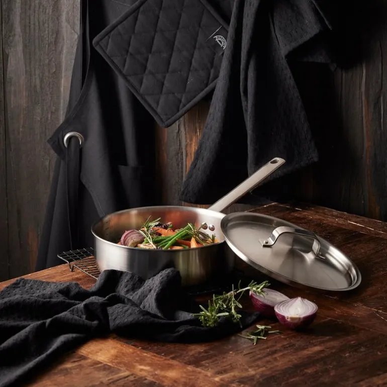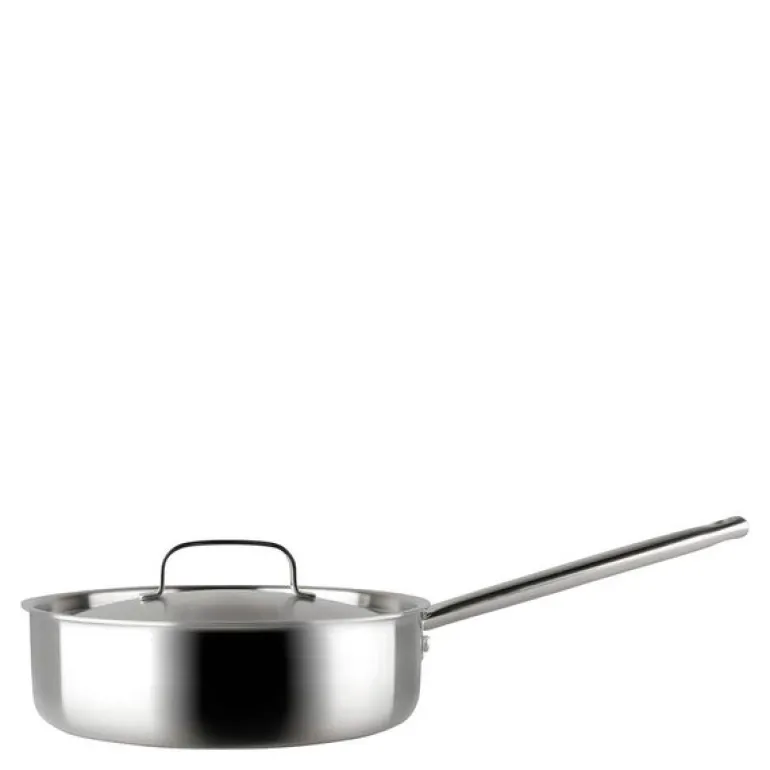 Pillivuyt Gourmet Somme sautépanne med lokk, 24 cm, er en slitesterk og allsidig panne designet for å møte alle dine kulinariske behov. Laget av 18/8 rustfritt stål, har pannen en trelags konstruksjon med aluminium i midten, som gir utmerket varmefordeling og jevn matlaging. Uten belegg er pannen nærmest uslitelig og perfekt for høytemperaturstekning eller bruning.