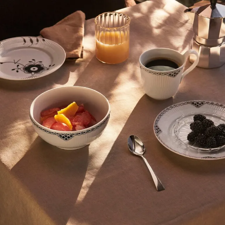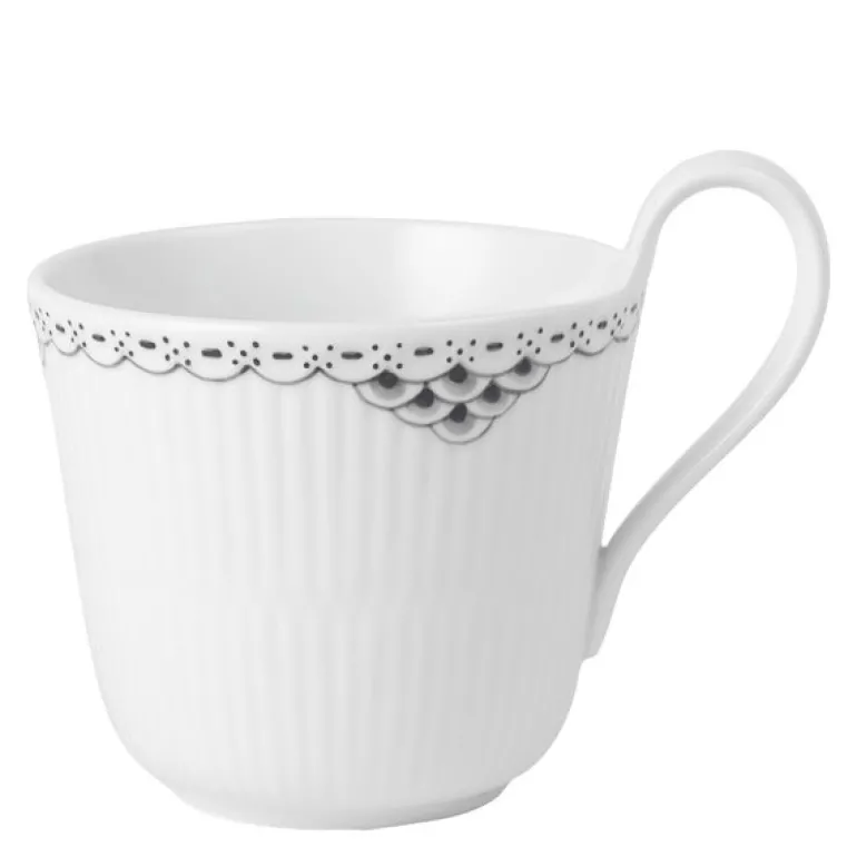 Sort Riflet Blonde høyhankskopp på 33 cl fra Royal Copenhagen utstråler sofistikert eleganse og er et utmerket valg for alle kaffe- eller testunder. Den ikoniske designen med høyt håndtak gjør kruset både behagelig å holde i og gir det en unik og stilfull karakter. Den fine svarte blondedekorasjonen tilfører en moderne touch til den klassiske formen, noe som gjør kruset til et kunstverk i seg selv. Enten du bruker det til hverdags eller ved spesielle anledninger, vil dette kruset løfte opplevelsen og tilføre en følelse av tidløs skjønnhet og kvalitet til enhver borddekking.