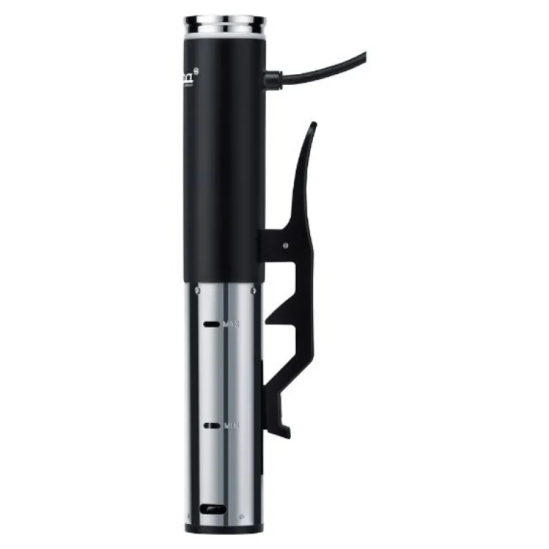 Sous Vide sirkulator med IPX7 som varmer opp 20 l vann til 56?c på ca 45 min. Denne sirkulatoren viser temperaturen veldig nøyaktig mellom 25 og 90 grader og har et avvik på kun 0,1 grader. Brukervennlig Sous Vide-sirkulator med LED-lys som viser tre forskjellige farger, én farge for når det varmer, én farge for matlaging og en tredje farge når matlagingen er ferdig. STSV60 har også et lysende display som viser temperatur og en timer hvor du kan stille inn ønsket tid. Kan brukes til alle potter med en dybde på minst 15 cm og tar ikke mye plass. Det er veldig enkelt å rengjøre. Maten beholder vitaminer, mineraler og naturlig smak når den tilberedes med Sous Vide. – 4 automatiske programmer.- sirkulerer 8L i minuttet.- IPX7 godkjent 100% vanntett.