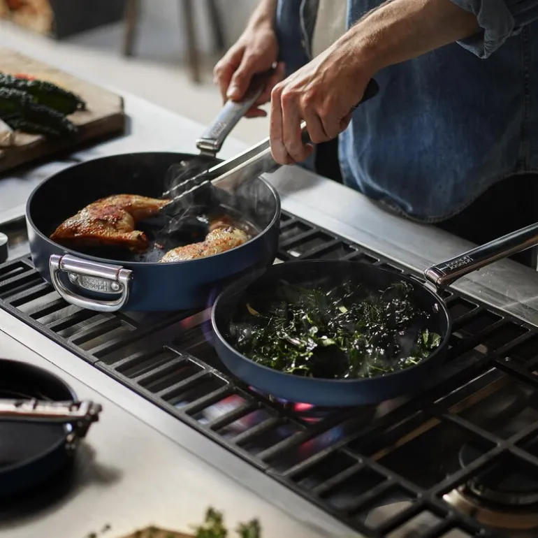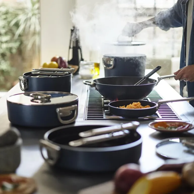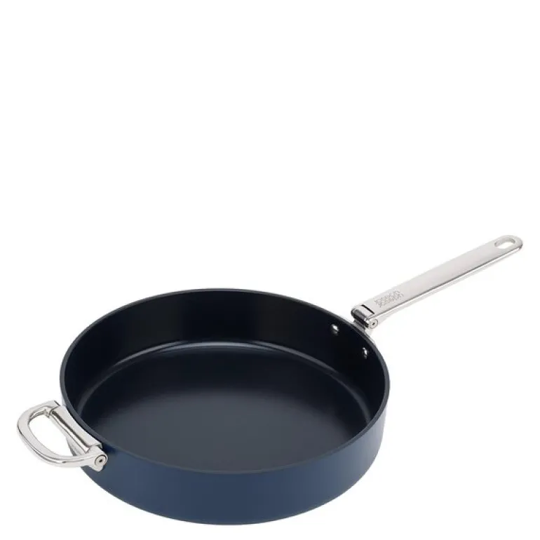 Denne 30 cm store stekepannen fra Joseph Josephs Space-serie kombinerer profesjonell kvalitet med smarte lagringsløsninger. Pannen har en elegant Midnight Blue-finish, og er laget av kraftig aluminium som sikrer jevn varmefordeling. Det keramiske non-stick-belegget gir enestående matlagingsresultater og er enkelt å holde rent. De foldbare håndtakene i rustfritt stål, med den patenterte SwingLock™-teknologien, reduserer plassbehovet med opptil 50 % når pannen lagres. Stekepannen tåler temperaturer opp til 232 °C i ovn, og passer til alle typer kokeplater, inkludert induksjon.