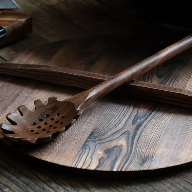 Denne spaghettisleiven er en del av Satakes vakre serie av kjøkkenredskaper i valnøtt, som også inkluderer: