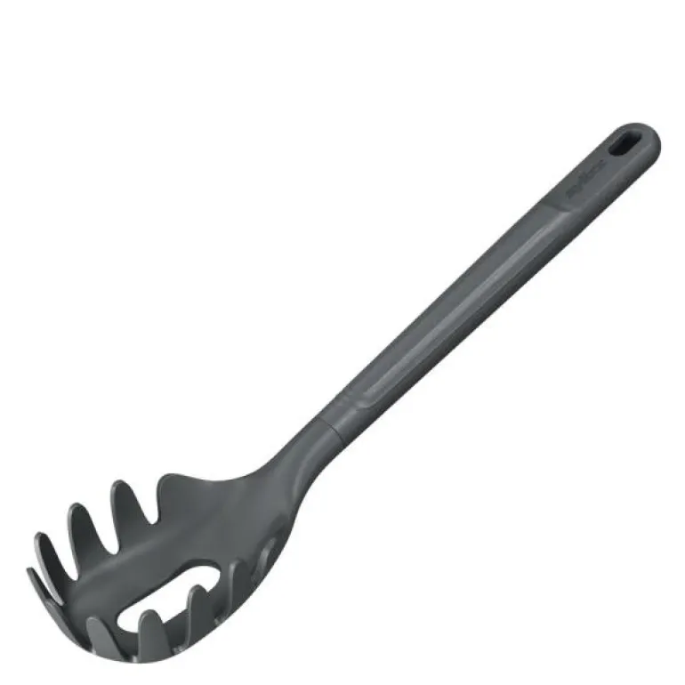 Grå spaghettiøse 31 cm fra Zyliss. En spaghettiøse gjør det enkelt å servere pasta. Åpningen i midten har dobbel funksjon; den sikrer effektiv vanndrenering ved servering, samtidig som den kan brukes som måleredskap ved tilberedning av spaghetti. Diametern på hullet i midten tilsvarer mengden på 50 gram tørr spaghetti.