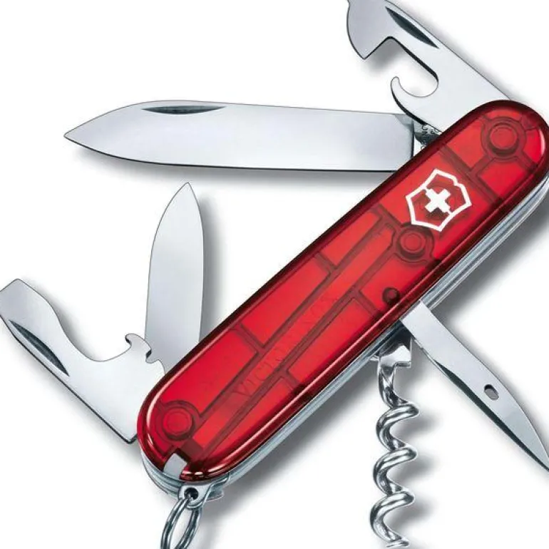 Victorinox lommekniv Spartan rød transparent 91mm i blisterpakning med 12 funksjoner inkludert stort og lite knivblad, flaskeåpnere, vinopptrekker, syl og skrutrekker. Kniven er i rustfritt stål med deksler i plast. Victorinox er et gammelt kvalitetsmerke på kniver fra Sveits.Det begynte med de verdensberømte Swiss Army Knives og produserte etterhvert kniver både til profesjonellt bruk og til hobby kokker.Victorinox har fokus på kvalitet, innovasjon og tradisjon.I de senere år også produserer de i tillegg andre produkter som klokker, reiseartikler og dufter.