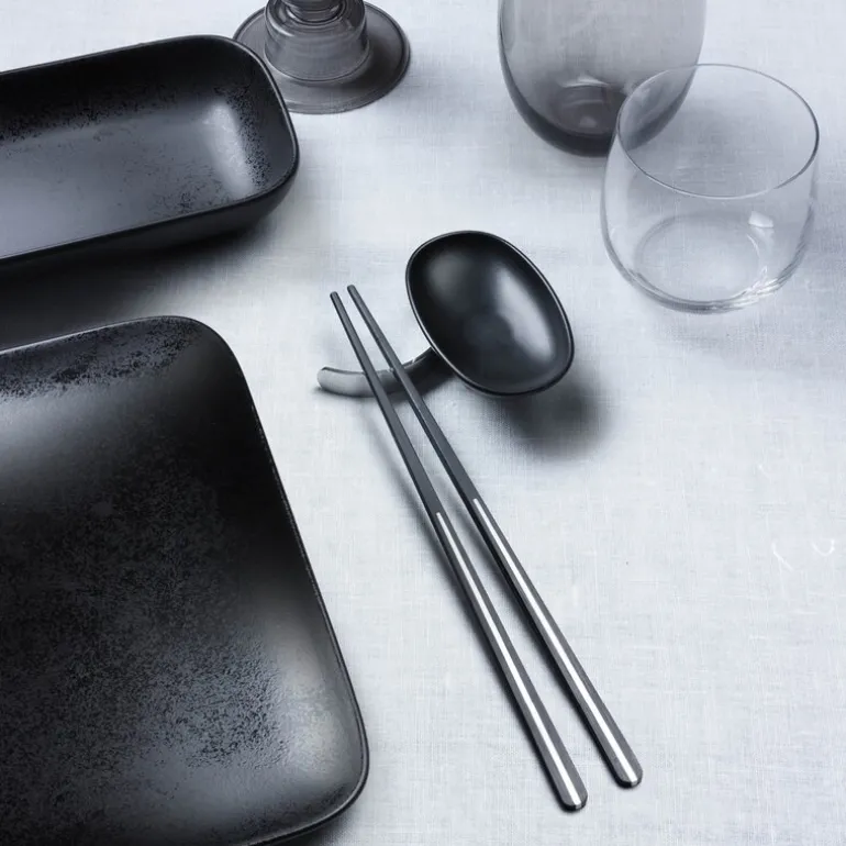 Dette sushisettet fra Pintinox består av to sett spisepinner, en liten skål og en multifunksjonell holder som også kan brukes som serviettring. Audrey-settet gir en smakfull presentasjon av sushi eller småretter og tilfører bordet et raffinert preg.