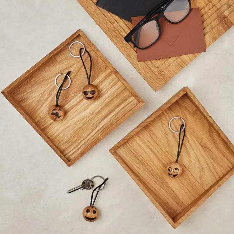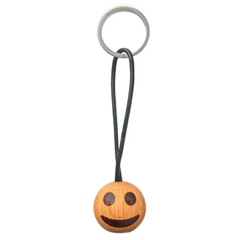 Nøkkelring i eik, Smiley, fra serien Spring Emotions® til Spring Copenhagen. Duoen Mencke&Vagnby har forvandlet en rekke av de emojiene vi alle sender på chat og tekstmeldinger, til flotte og søte dekorasjoner. En serie som har fått navnet Spring Emotions®.Følelser er noe vi alle har – uansett hvor vi kommer fra eller hvem vi er. De er med på å knytte oss sammen, og følelsenes uttrykk er et universelt språk som vi alle forstår. Vi smiler når vi er glade. Vi gråter når vi er lei oss. Og vi ler når det skjer noe morsomt.Spring Emotions® fanger nettopp dette. De finnes i mange forskjellige variasjoner, og derfor er det en Spring Emotion® til enhver anledning.Mål:Diameter: 3 cmCa 8 cm lang lærrem.
