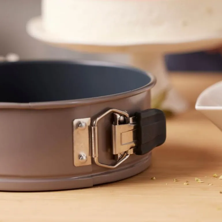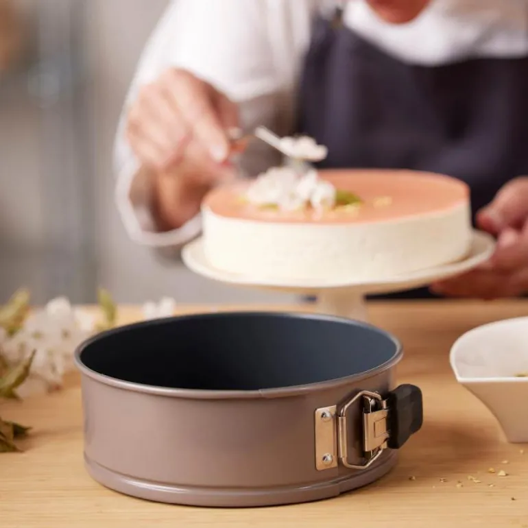 Springform 20 cm stål i fargen latte fra Blomsterbergs. Springform av ekstra solid kvalitetsstål, med 1 mm tykk bunn og et praktisk non-stick-belegg som gjør at de hjemmebakte godsakene slipper formen lettere. Designet er elegant med en vakker latte farge på utsiden. Springformen er perfekt til for eksempel ostekake, sjokoladekake, gulrotkake, bløtkake og dessertbunner. Bør vaskes før første bruk. Springformen tåler temperaturer opptil 230 °C.
