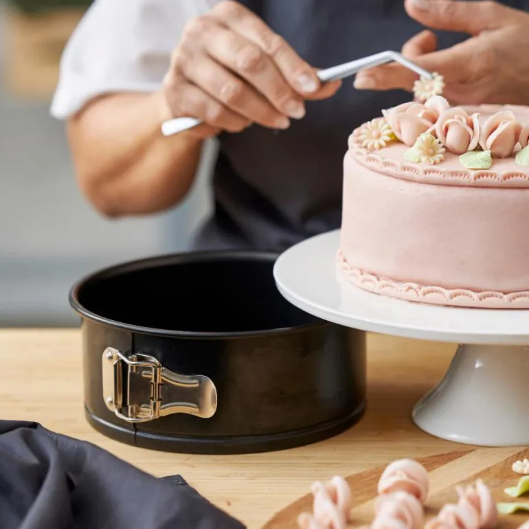 Springform 20 cm stål, fra Blomsterbergs. Lett stålform med nonstick belegg som slipper lett og er enkelt å rengjøre. Formen rommer 2,1 liter, er 8,5 cm høy og brukes til alle typer stekte kaker, som for eksempel formkake, gulrotkake, drømmekake og sjokoladekake samt til brød og tykke bløtkake og dessertbunner.