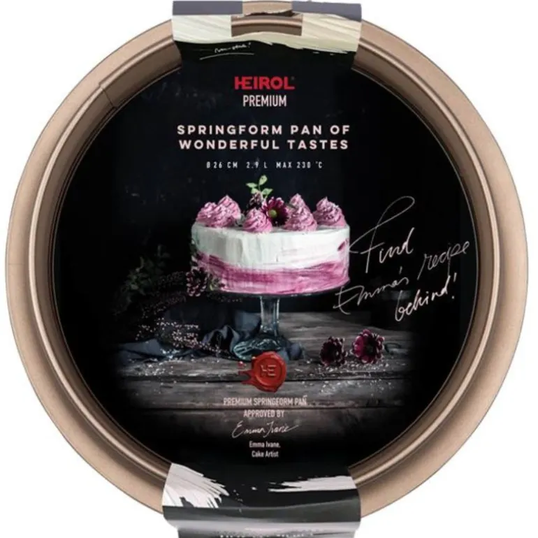Emma Ivanes utvalgte springformer er designet for bakere som vil ha ekstra høy kvalitet og estetisk tiltalende produkter. Springformen er laget av karbonstål i ekstra tykk kvalitet. Non-stick-belegget er utviklet for profesjonelle bakere og har en lekker champagnefarge.Formen gir rette kanter med stor presisjon, noe som er viktig når du skal bygge høye kaker med flere bunner. 26 cm i diameter, høyde 7 cm. Fri for PFOA og PTFE.