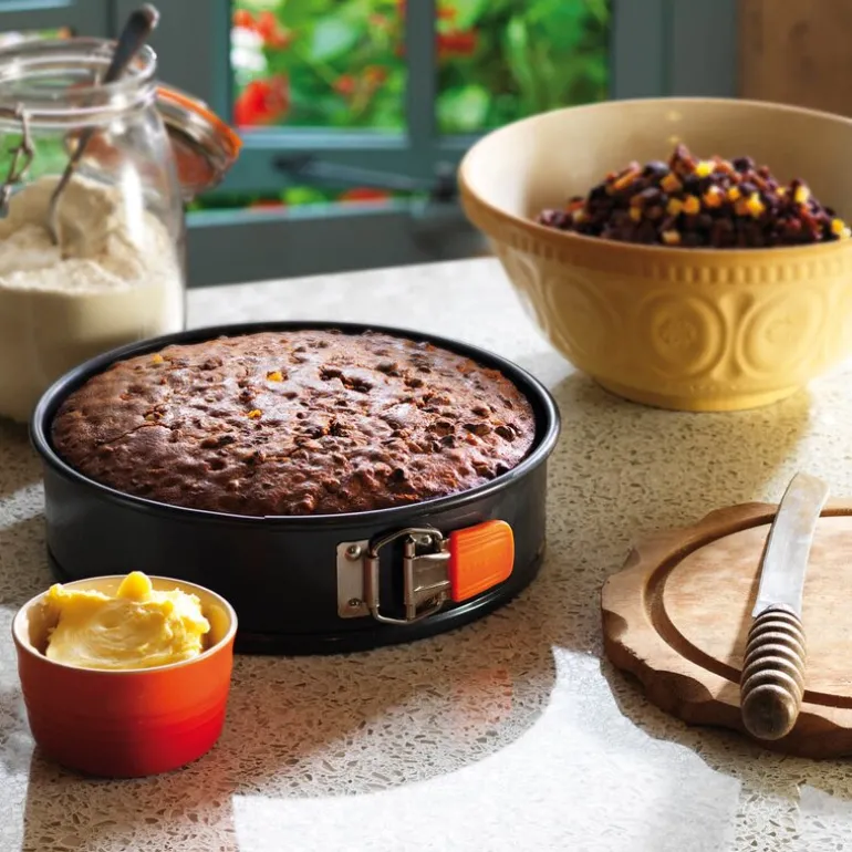 Le Creusets springform er en uunnværlig form på kjøkkenet. Bruk springformen til å bake lekre og smakfulle paier, brød og kaker. Det er lett å fjerne ringen fra springformens bunn, slik at du kan servere hjemmelagde kaker med stil. Springformens slipp-lett-belegg gjør det unødvendig å smøre formen eller bruke bakepapir, da kaker og brød lett slipper formen.