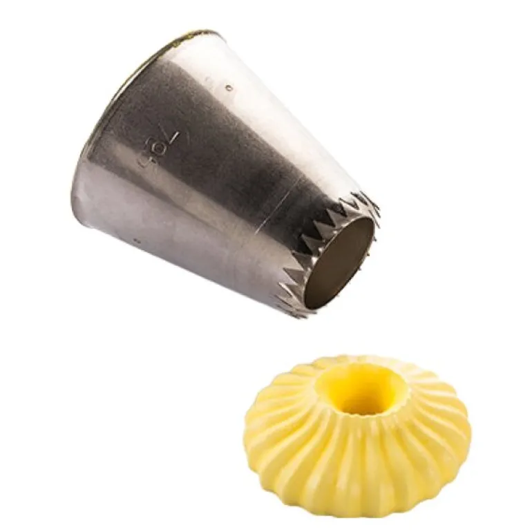 Lag imponerende dekorasjoner med Silikomarts Religieuse 01 sprøytetipp. Med en bred åpning på Ø30 mm er den perfekt for klassiske franske bakverk som Religieuse, men også for andre kreative kakeprosjekter.