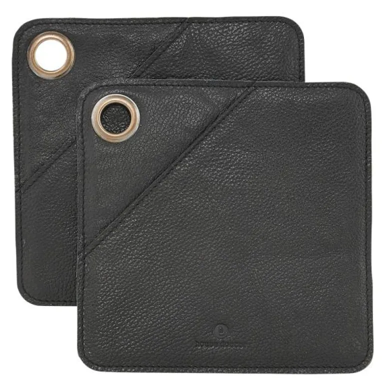 Skap en personlig atmosfære på kjøkkenet med fine detaljer i naturlige materialer. De firkantede gryteklutene fra House Doctor er laget av bøffelskinn og kommer i en fin, svart farge. Det naturlige materialet gir dem et eksklusivt og maskulint utseende som gir personlighet til kjøkkeninnredningen. I tillegg passer disse gryteklutene perfekt på hendene, slik at du enkelt kan ta varme retter ut av ovnen.