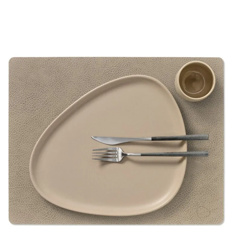 LIND DNA TABLE MAT SQUARE er laget av OEKO-TEX® resirkulert skinn, som er lett å rengjøre, og spisebrikken er derfor både dekorativ og praktisk.