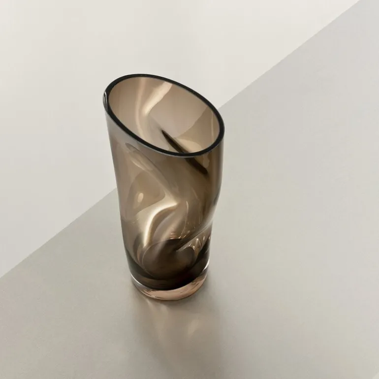 Squeeze tulipanvase fra Orrefors har en bølgende form som endres i ulike vinkler avhengig av hvordan den er plassert. Etter at vasen er blåst, og mens den fortsatt er varm, «klemmes» den sammen for hånd to steder. Disse «klemmene» danner et kryss inni som hjelper til med å holde blomstene på plass. Designet av Lena Bergström.