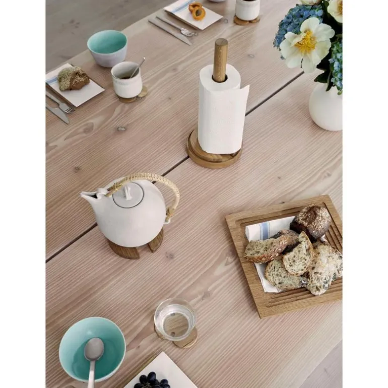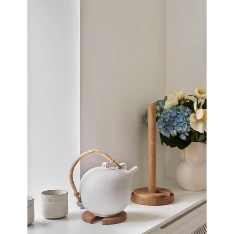 Stack tørkerullholder 35 cm eik fra Spring Copenhagen. Stack er en enkel og vakker kjøkkenrullholder. Den kommer med to coasters, som du kan stable oppå Stack og ta av igjen. En oppfinnsom detalj som ga designet navnet sitt. Stack gir deg alt du trenger for å dekke bordet. Den er laget av FSC-sertifisert eik og er designet av Benjamin Hansen.