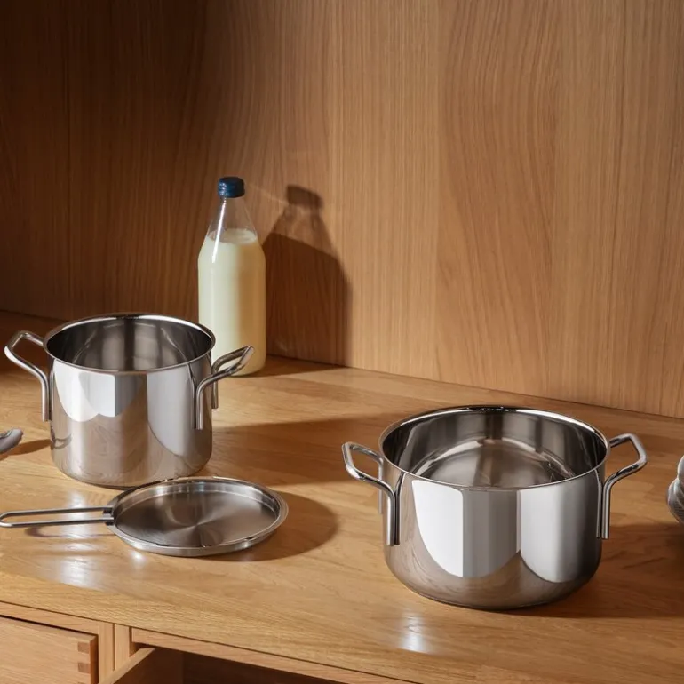 Stainless Steel gryte 2,2L fra Eva Trio. Ethvert kjøkken fortjener en slitesterk gryte i rustfritt stål. Det robuste materialet tåler slitasje, mens den innkapslede sandwichbunnen sørger for jevnt fordeling av varme, noe som gjør gryten til det opplagte valget når du skal koke pasta eller ris, eller tilberede sauser og små porsjoner supper. Gryten er lagd av 90 % resirkulert rustfritt stål, og designet er basert på det klassiske Ole Palsby/Eva Trio-designet fra 1977, noe som sikrer kompatibilitet med eksisterende Eva Trio-lokk. Gryten fungerer på alle typer koketopper og tåler oppvaskmaskin.