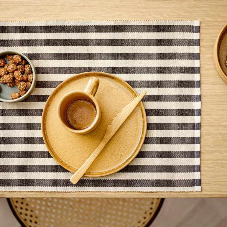 Disse klassiske stripene med brede og ensartede linjer er det perfekte bakteppet for hverdagslivet. Dekkeservietten er laget av bomull og jutefibre, noe som gir den et sjarmerende og lett rustikt utseende. Dekkeservietten finnes i en rekke flotte farger, slik at du kan gi interiøret et optimistisk løft.