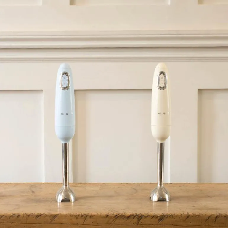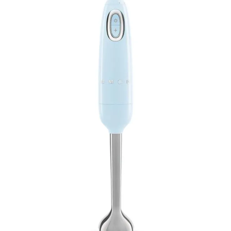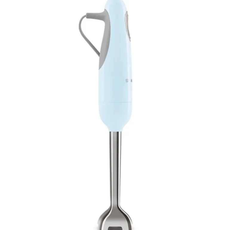 SMEG stavmikser HBF11 u/tilbehør pastellblå: Stavmikser fra Smeg uten ekstra deler i 50`s Retro Style. Flotte designelementer til ditt kjøkken, der estetikk og funksjonalitet i høysetet! Stavmikseren kan brukes til alt mulig matlaging, eksempelvis mose poteter, lage dressing, supper og vispe krem. T