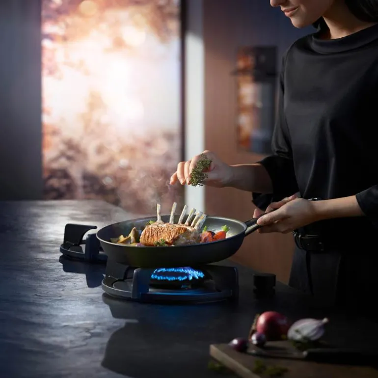 WMF stekepanner i Steak Profi-kolleksjonen holder formen sin og sikrer jevn varmefordeling og perfekt temperaturkontroll – ideelt for profesjonelle kokker. Biff er akkurat som kjærlighet – du må være varsom med den for virkelig å kunne nyte den fullt ut. Med Steak Profi-stekepanner er det lett å steke en perfekt biff. Det trelags induksjonsklare materialet og den innovative RAPID HEAT CONTROL-funksjonen sikrer at pannene varmes opp ekstremt raskt og at de reagerer like raskt når varmekilden fjernes. Ideelt til alle som vil prøve seg på å trylle frem mer krevende stekte retter på tallerkenen. De førsteklasses pannene stråler med deres utvendige kvaliteter og høykvalitetsmaterialer: De er fullt forseglet med den svært holdbare Duraquarz® forseglingen, og håndtaket i rustfritt stål sikrer at de motstår høye temperaturer i ovnen.