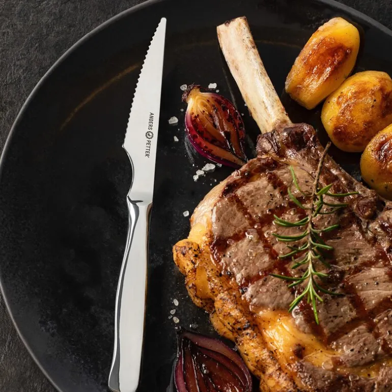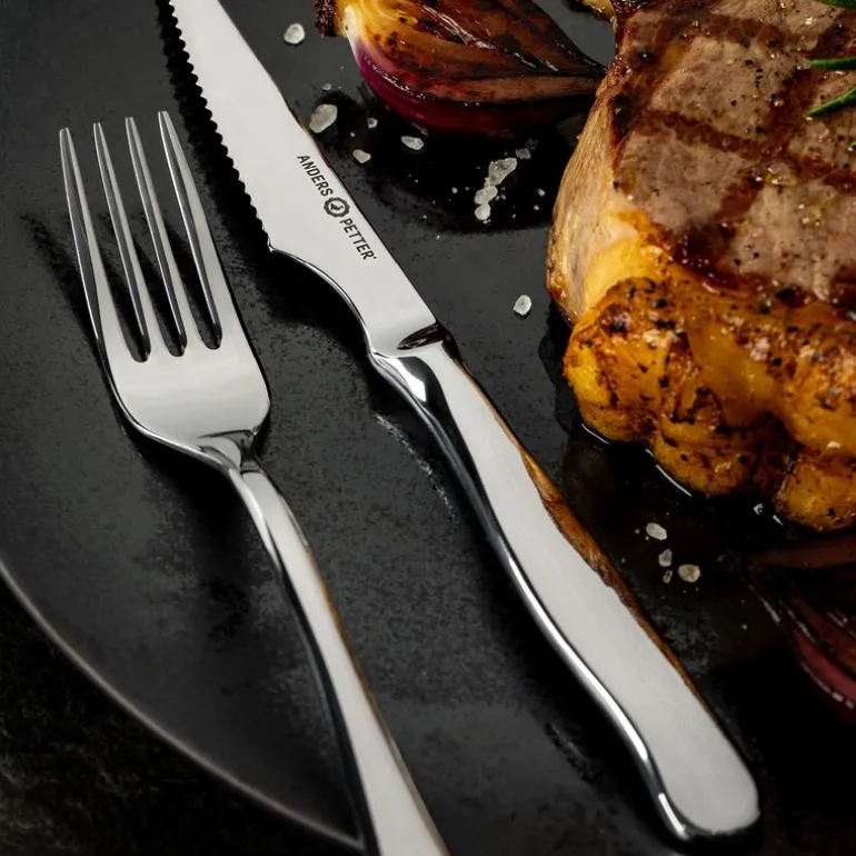 Sett en sofistikert touch på måltidene dine med dette bestikksettet i rustfritt stål fra Anders Petter, perfekt til både hverdagsbruk og festlige anledninger. Settet består av 12 deler – 6 kniver og 6 gafler – som dekker dine behov for servering av både kjøtt, fisk og grønnsaker. Knivene har skarpe blad som gjør det enkelt å skjære gjennom ulike retter, mens den tidløse og elegante designen passer naturlig inn i ethvert kjøkken og kompletterer alle borddekkingsstiler. Med Anders Petter får du produkter som forener innovasjon med klassisk stil, tilpasset både tradisjonelle og moderne behov på kjøkkenet.