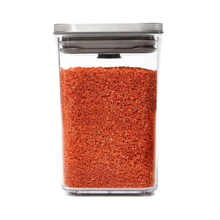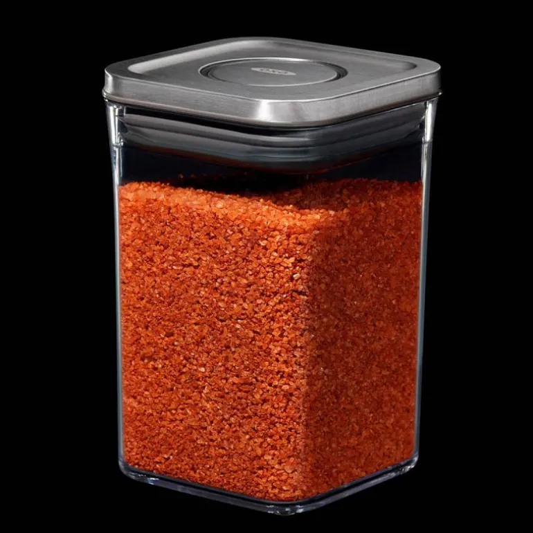 SteeL POP Containers fra OXO er lufttette oppbevaringsbokser til sukker, mel, pasta, ris og andre tørre matvarer. De har et elegant design med lokk i rustfritt stål, fås i mange størrelser og kan stables, så de utnytter plassen og passer i alle kjøkkenskapene. Lokket har en unik trykkfunksjon som sørger for at det lukker helt tett, samtidig som det fungerer som et håndtak, når det åpnes. Den lufttette forseglingen holder maten frisk lenger, og boksenes rundede hjørner gjør det lett å helde ingrediensene ut av dem. På undersiden av lokket kan man feste forskjellige tilbehør, som kjøpes separat. Lokket kan demonteres for grundig rengjøring, og både selve POP Containeren og lokket tåler oppvaskmaskin. POP Containers kan også brukes i garasjen, på hobbyrommet, barnerommet, osv.