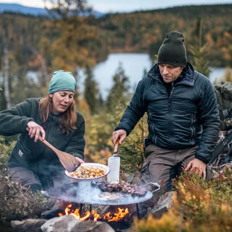 Den svarte stekehellen i 58 cm fra Hällmark passer fint for en gruppe på opptil 8 personer. En fleksibel modell som er enkel å ta med ut i skogen, i båten eller i bobilen. Stekehellen kan brukes i kombinasjon med gassbrenner på stativ, men også på en grill eller rett over åpen ild. Stekehellen er laget av høykvalitets varmvalset stål og leveres fabrikkoljet.
