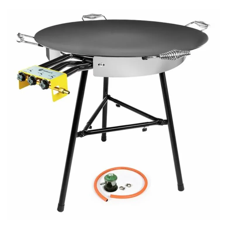 Stekehellesett med brenner i størrelsen 78 cm fra Hällmark of Sweden er perfekt for sosiale sammenkomster. Denne store stekehellen er ideell for fest i hagen, langs vannet eller på campingplassen, og håndterer enkelt selskaper på opptil 15 personer. Den kan brukes sammen med den medfølgende gassbrenneren på stativ eller rett over åpen ild, noe som gjør den ekstremt allsidig.