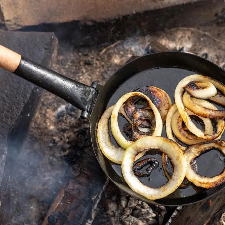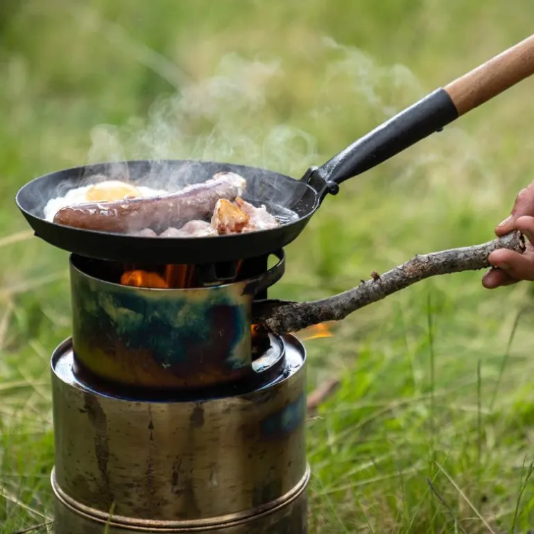 Liten stekepanne 21 cm fra Hällmark. Den lille og fleksible jaktpannen med sammenleggbart trehåndtak gjør den lett å ha med seg i sekken. Trehåndtaket gir sikker håndtering, enten det er over en gassflamme eller over åpen ild. Kjelen i varmvalset stål leveres fabrikksmurt. En trofast venn og verdsatt gave til jegere, fiskere og frilufts entusiaster Hällmark of Sweden har sitt opphav og merkevare fra det svenske land og fjell. Diameter 21 cm, vekt 0,65 kg.