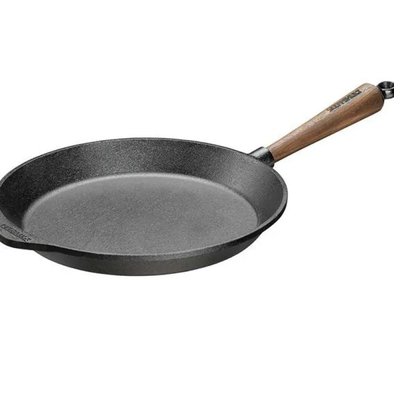 Stekepanne i støpejern 28 cm med håndtak i valnøtt.