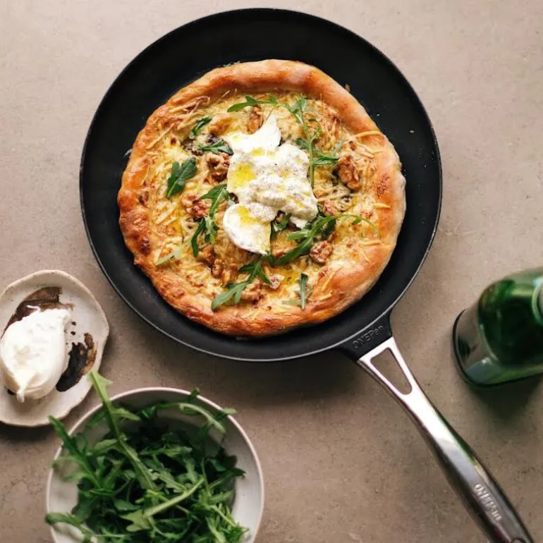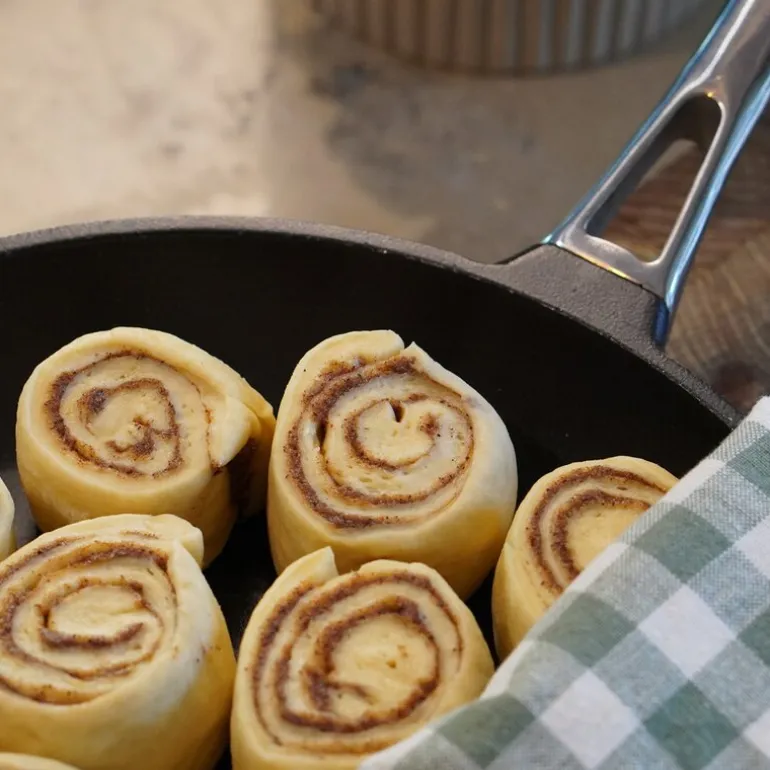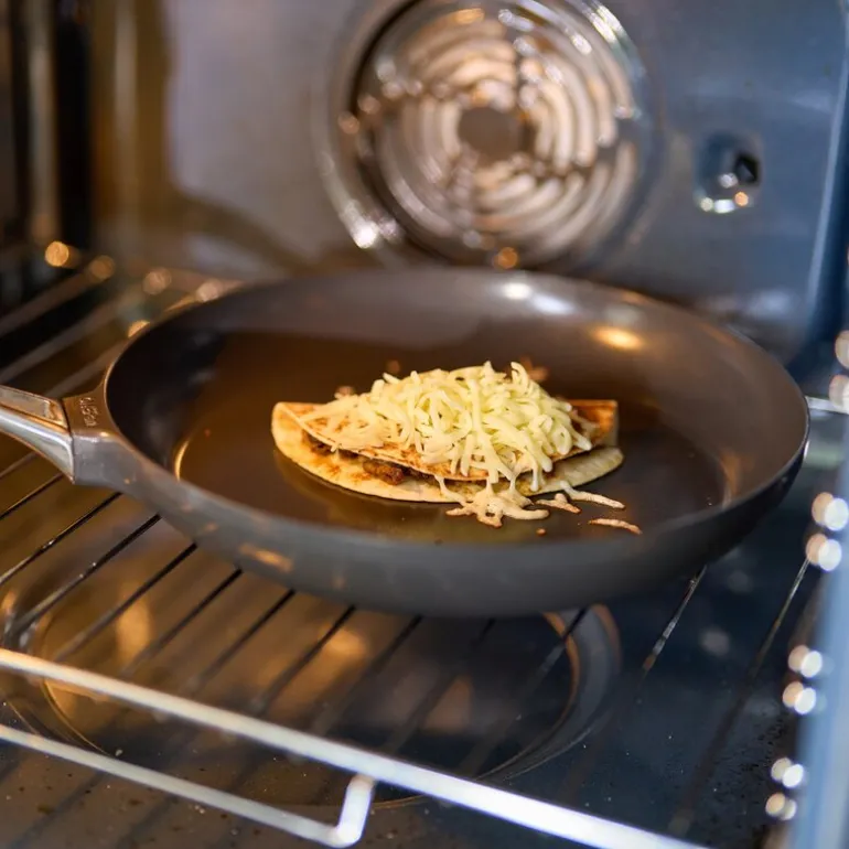 - OnePan er laget for å tåle det meste – enten det er metallredskaper, høye temperaturer, stekeovn, åpen flamme eller oppvaskmaskin. Likevel varer den lenger og presterer bedre når du behandler den med omtanke. For eksempel bør du varme opp pannen gradvis og unngå å overopphete den tom, da dette beskytter belegget og gir jevn varmefordeling. Det anbefales også å rengjøre den grundig for hånd med varmt vann og såpe, og bruke en mikrofiberklut for å gi overflaten glans.Pannen er belagt med en keramisk non-stick-overflate helt uten PFAS-stoffer, og skiller seg fra mange andre alternativer på markedet. Du kan derfor bruke den med god samvittighet, uten å bekymre deg for kjemikalier. Selv metallredskaper kan brukes uten risiko for helseskadelige partikler, men mykere redskaper som tre eller silikon bidrar til å bevare belegget lengre. Skulle det brenne seg mat fast, kan du helle i vann, koke opp og vaske den grundig etterpå for å gjenvinne non-stick-effekten.