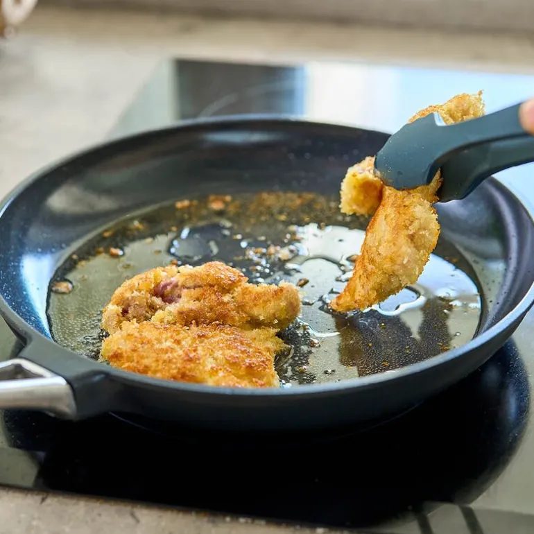 Den teknologisk avanserte keramiske non-stick-overflaten sørger for enkel steking uten at maten setter seg fast. Pannen er laget av resirkulert aluminium og kombinerer varmeegenskapene til støpejern med fordelene av non-stick-belegg, noe som gir jevn varmefordeling og utmerkede stekeresultater.