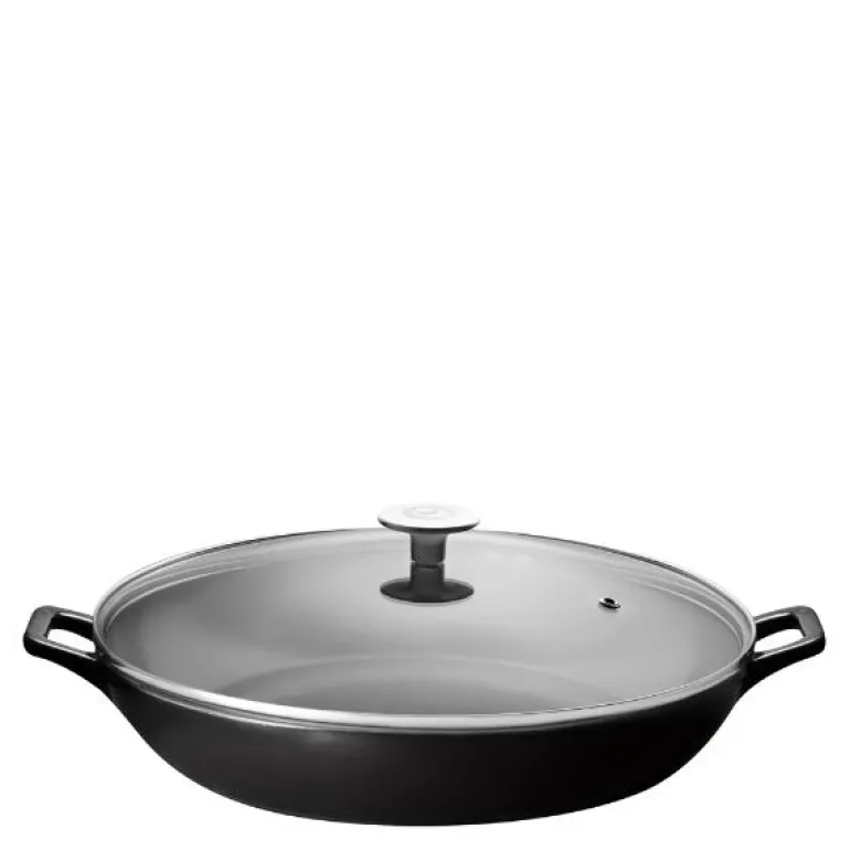 Stenfors buffetgryte 3L i svart emaljert støpejern er en robust og stilfull gryte, ideell til servering rett fra bordet. Med grepvennlige håndtak på begge sider og et varmebestandig glasslokk med damphull, er gryten utformet for å tåle daglig bruk. Gryten kan maskinvaskes og tåler ovn opp til 250 °C, mens glasslokket tåler opp til 220 °C. Perfekt for deg som verdsetter kvalitet og funksjonalitet i kjøkkenutstyret.