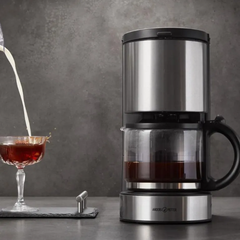 Stenfors kaffebrygger 1,25L fra Anders Petter er en stilren og funksjonell kaffebrygger med kapasitet for opptil 10 kopper (1,25 liter). Takket være dryppstopp-funksjonen kan du enkelt ta en kopp kaffe før hele bryggingen er ferdig. Bryggeren bruker filterstørrelse 1×4, og en rød lampe lyser mens bryggingen pågår. Den slår seg automatisk av etter 40 minutter for ekstra sikkerhet.