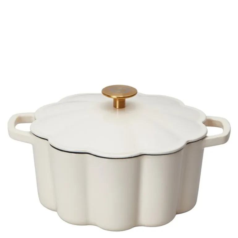 Stenfors støpejernsgryte 4,2L blomst krem/gull. Denne vakre emaljerte støpejernsgryten fra Anders Petter er en perfekt investering for alle som elsker å lage mat. Den er formet som en blomst og kommer med knott i gull farge, noe som gir den en unik og elegant utseende. Gryten rommer 4,2 liter, noe som gjør den perfekt for å lage mat til en familie eller en gjeng venner.