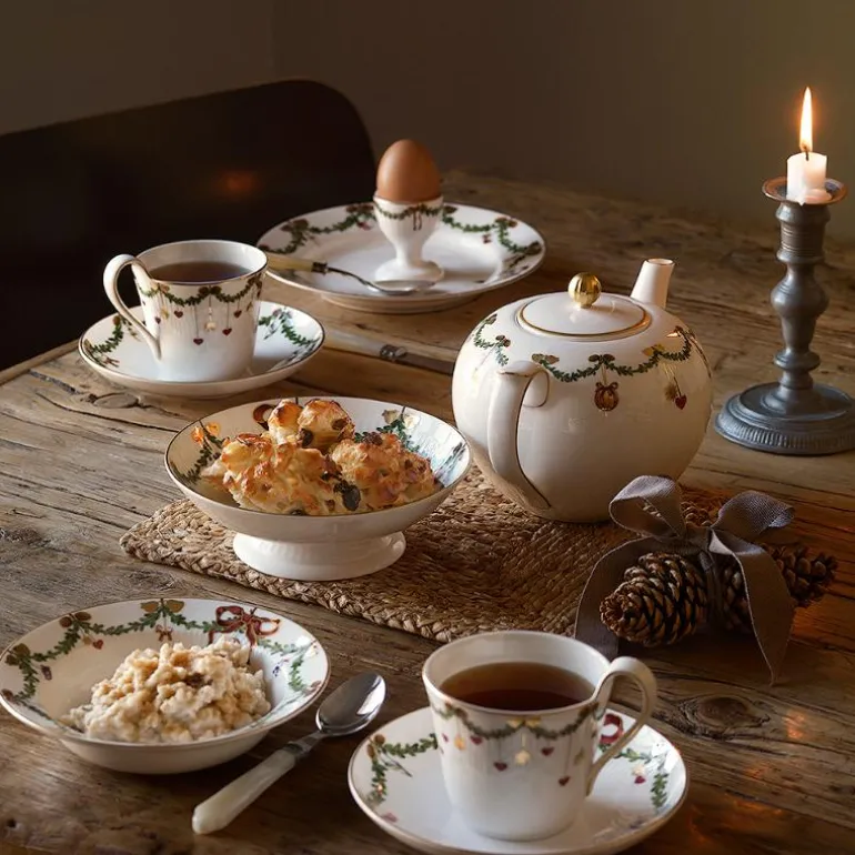 Med sine kranser og røde bånd har Stjerneriflet Jul utviklet seg til en Royal Copenhagen klassiker. Inspirasjonen til det vakre benporselenserviset er basert på en serie som ble produsert for første gang i 1895. I dag er det dekket med Stjerneriflet Jul på julebord over hele verden.