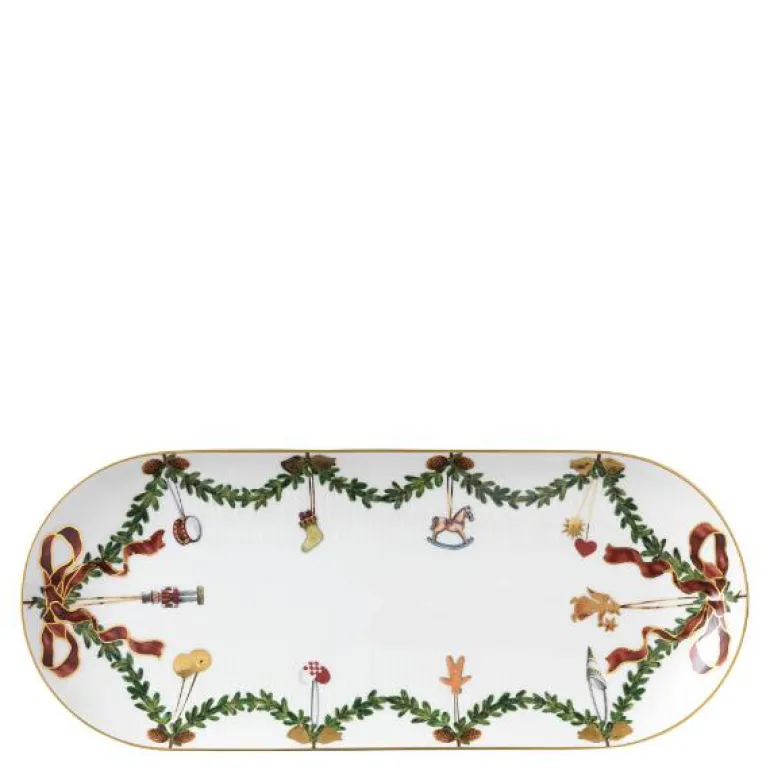 Å dekke bordet med juleservise fra Royal Copenhagen er en av mange juletradisjoner. De dekorative kransene av gran, prydet med silkebånd og julepynt rundt kantene på tallerknene, skålene og koppene, skaper et rikt og elegant servise som danner den perfekte ramme for et hyggelig julemåltid. Julen er her når bordet er dekket og lysene er tent.