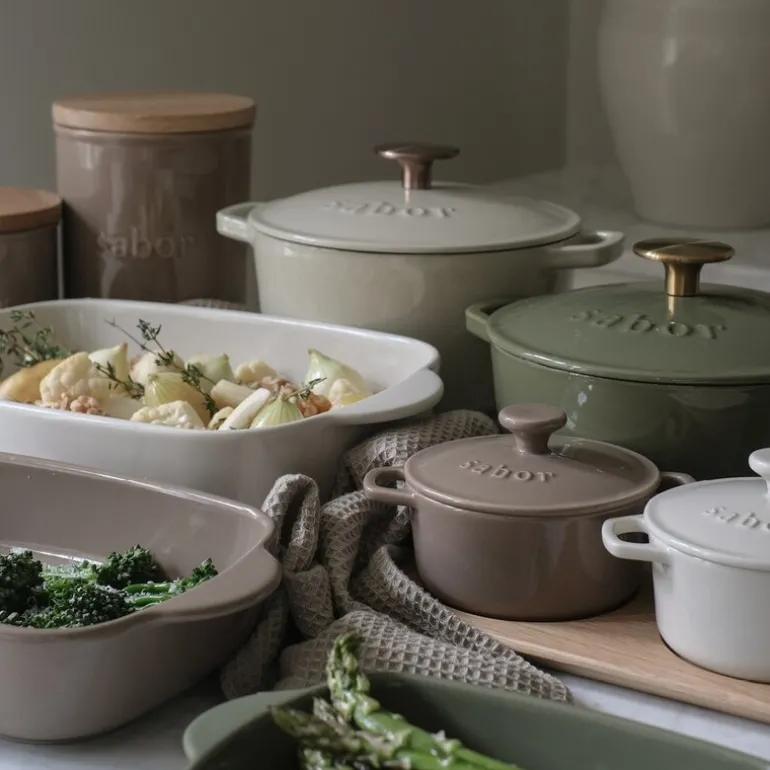 Sabor støpejernsgryte 2 L oliven er et mesterverk av robusthet og kvalitet, designet for å vare i flere generasjoner. Den er kjent for sin evne til å holde og distribuere varmen jevnt, noe som gjør at du ofte kan bruke bare halvparten så mye varme som du vanligvis ville gjort. Dette gjør gryten ideell for retter som krever høy og jevn temperatur, samt for langtidssteking eller -koking. Den er spesielt godt egnet for gryteretter og steker, hvor kjøttet først kan brunes i en panne før det stekes ferdig i ovnen i støpejernsgryten.